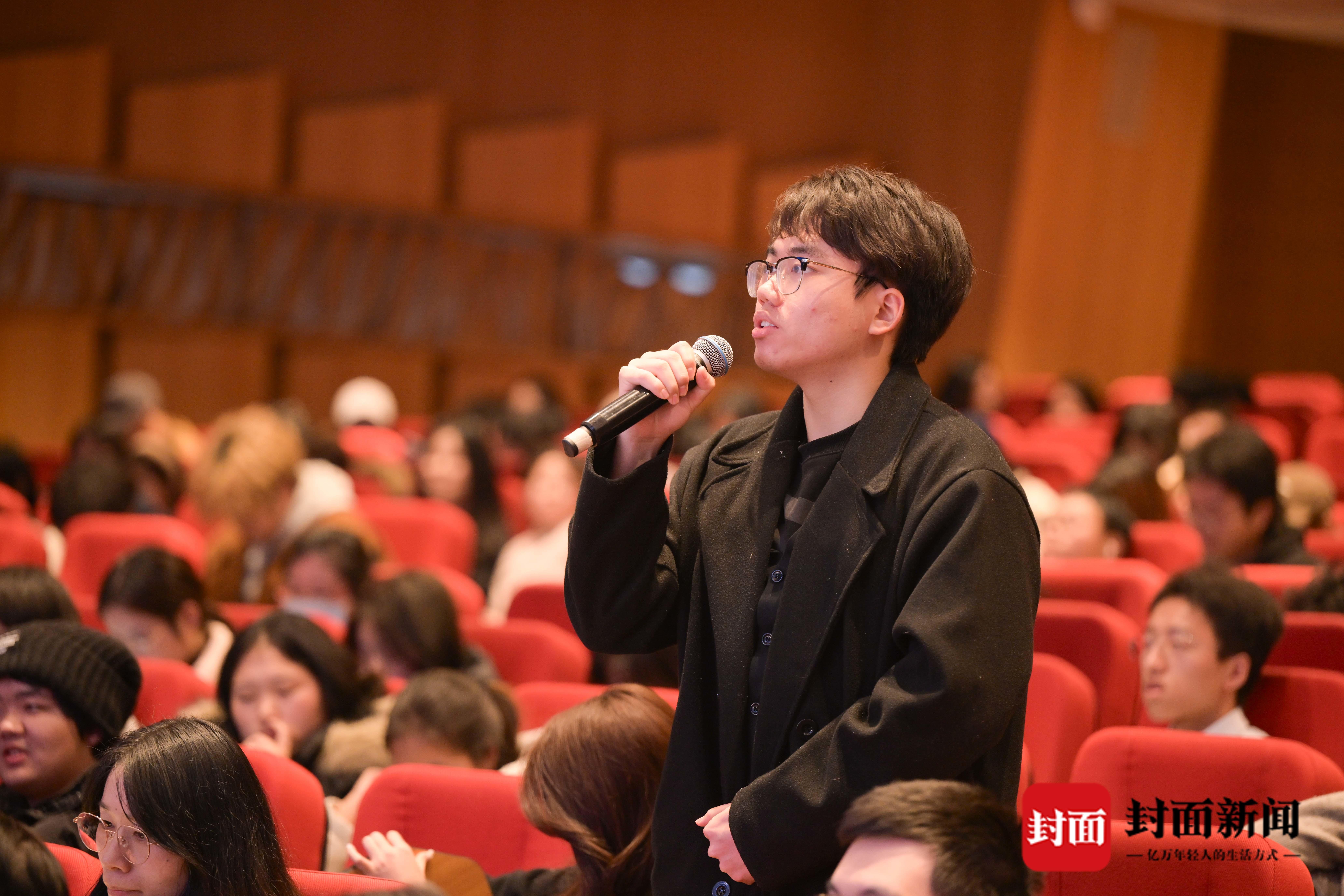 吴毅强老师的讲座介绍了大量的青铜器铭文。汉语言文学专业刘珺月提问:“文字对于青铜器的价值来说,是否有决定性的地位?”他给予肯定回答:“一个青铜器有没有文字,价值是完全不一样的。我们今天看了很多青铜器,为什么大家耳熟能详?为什么很多节目展示的时候会选择它?其实最主要就是因为它的铭文内容。”他举例,比如一个墓葬如果发现了文字,我们能凭借文字推测墓主人及家族信息。他也分享考古学界流传的一句话:“墓葬能起决定性的作用、一锤定音的就是文字。”