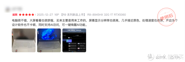屏幕表现比较好,日常工作用也舒服,能看到接近原色,开多个设计软件也不卡顿,可以一键唤醒AI功能。