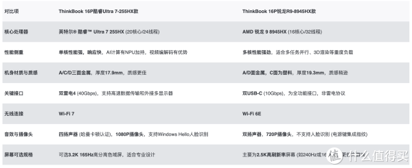 他们之间细节区别还不小,除了厚度和处理器外,接口是我比较在意的,扩展性会有影响,酷睿版用了两个雷电4,WIFI7,还是四扬声器,1080P人脸识别。